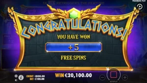 Trigger 15 free spins by landing 4 Zeus symbols. During this round, you can earn additional multipliers and spins. Bonus spins can be purchased for x100 of the bet.